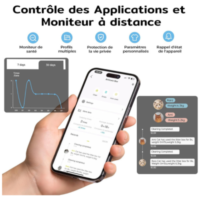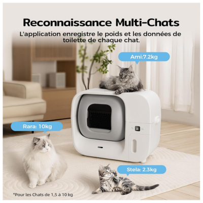 Ce qui fait la différence : l’auto-emballage des déchets (fini les manipulations désagréables !), le design fermé qui limite les odeurs, et l’application mobile pour tout piloter à distance. Un vrai confort au quotidien, surtout dans les foyers multi-chats.