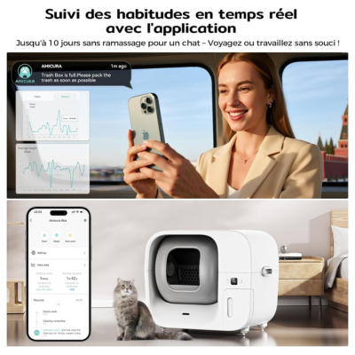 🐱 En résumé, l’Amicura Cura3 s’adresse aux propriétaires qui veulent aller plus loin que le simple nettoyage automatique. Son système d’auto-emballage, sa sécurité renforcée et son approche orientée hygiène en font une solution particulièrement intéressante pour les foyers multi-chats ou les personnes cherchant un confort maximal au quotidien.